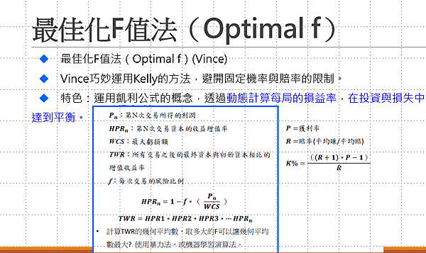 那Optimal f 其實就是 凱利公式的進化版
